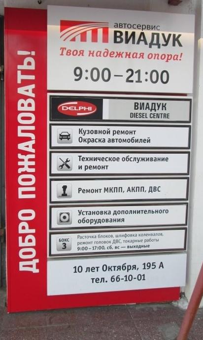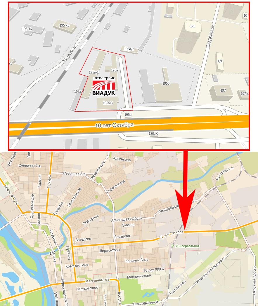 Автоцентр ВИАДУК – это крупный независимый автоцентр по техническому обслуживанию и кузовному ремонту. Автоцентр специализируется на ремонте легковых и коммерческих автомобилей, в том числе лёгких грузовиков, микроавтобусов и внедорожников. Мы осуществляем ремонты любой сложности со всеми агрегатами бензиновых и дизельных автомобилей, а также и их электроники. В кузовном цехе проводим полный цикл восстановления кузовов и окраски автомобилей.. Расположен автосервис по адресу: 1. Омск, улица 10 лет Октября, 195А, т. +7(3812)66-10-01 и